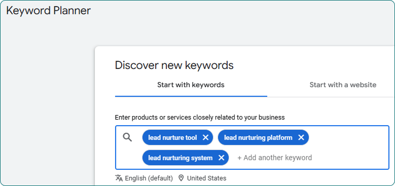 Open Tools → Planning → Keyword Planner → Discover new keywords.